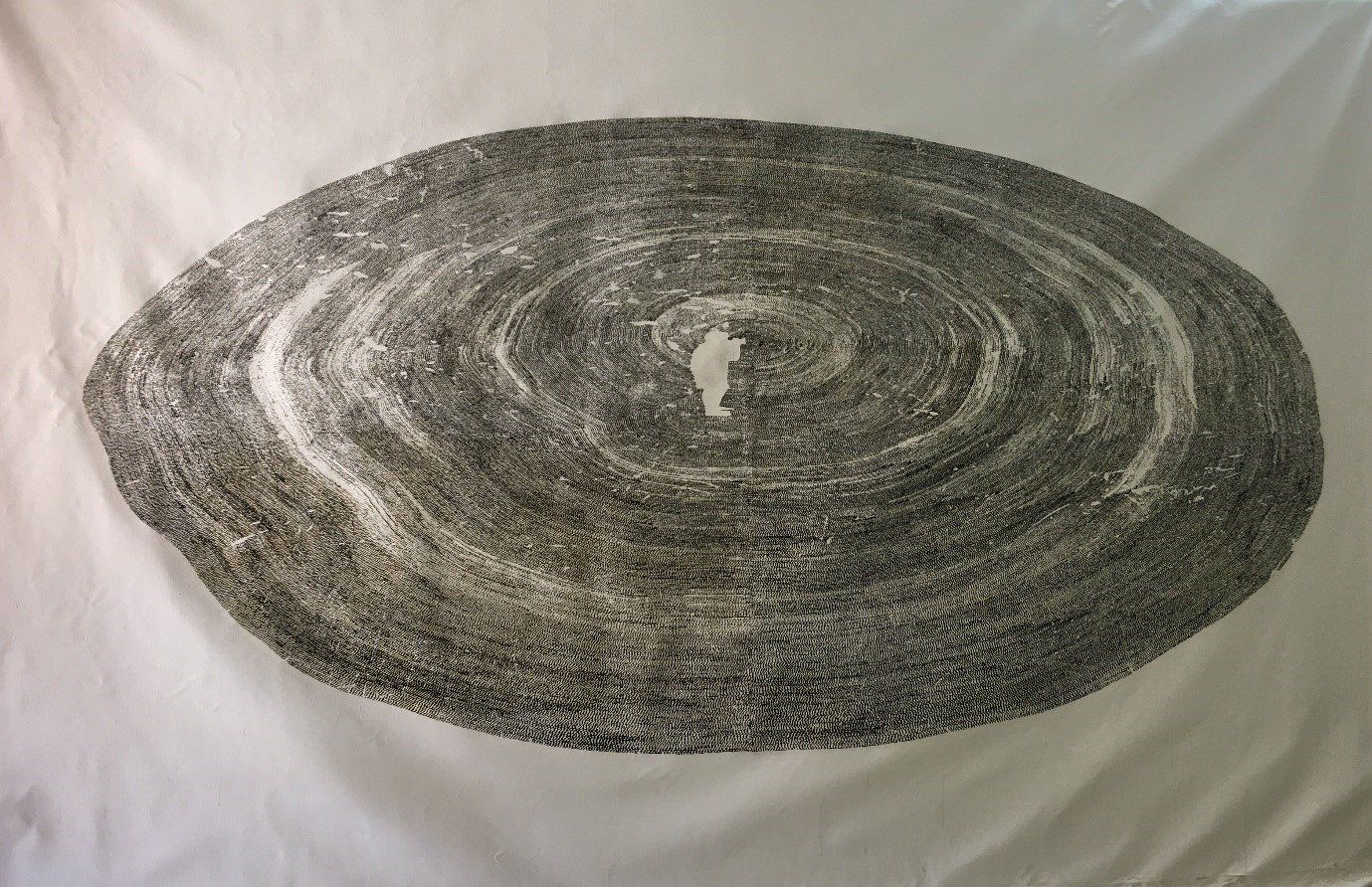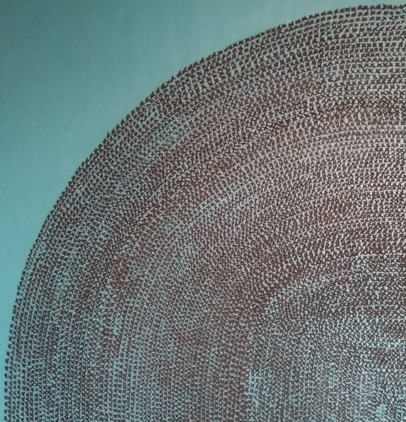 Surajit Biswas (b. 1980, India) acquired his Masters from Kala Bhawan, Viswa Bhariti University, Santiniketan. He has had several shows in India and abroad. His paintings are carefully structured, as he takes a line or a little line of dots for a meandering walk on the surface of paper or canvas. But what appears to be an abstract rendering at first glance, reveals a quirky sense of the understanding of negative-positive. With the pen and pencil, the paper and canvas as his basic tools, Surajit Biswas goes on to take the line for a really really long walk.
