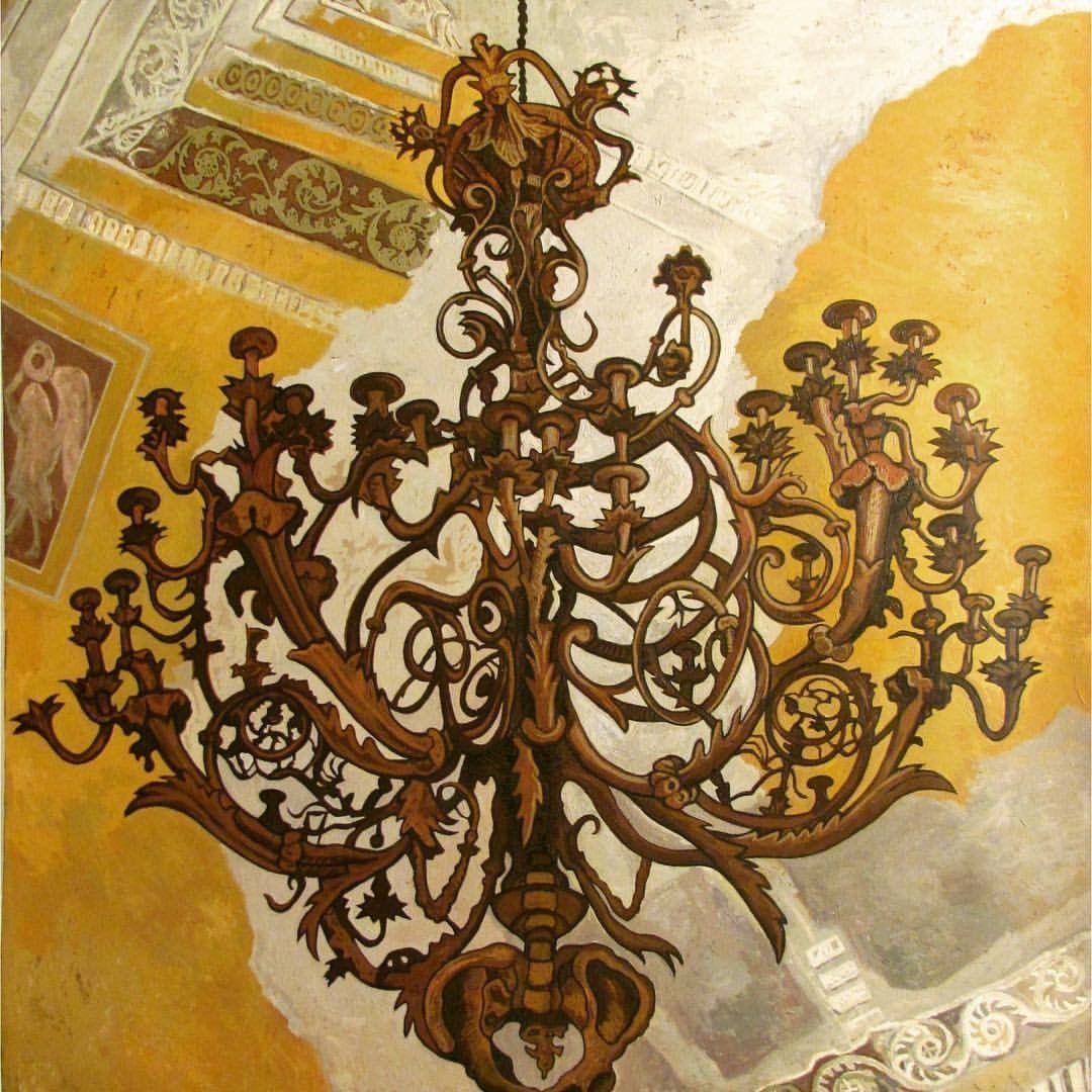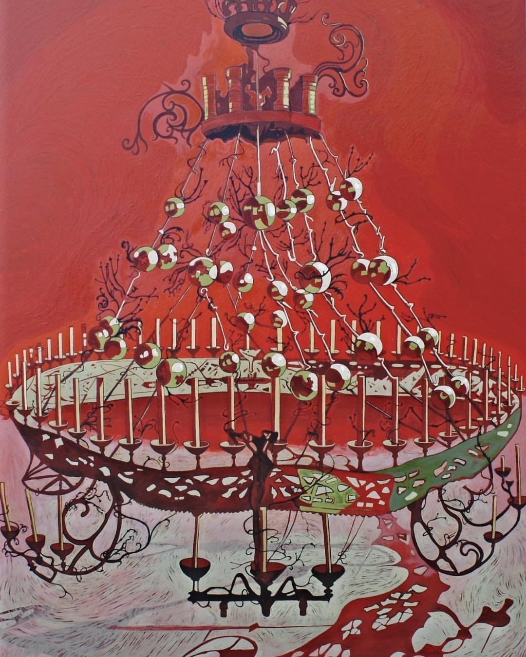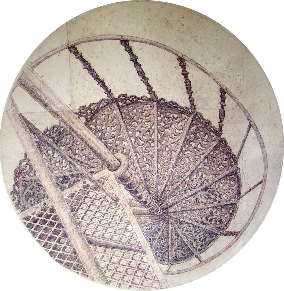 Her work critically examines the visual history and transitional phase of royalty from grandeur to decline post independence. It provides visual cues to the changing process of time and history where forms of objects, architecture, demography, customs and values are all subject to transformation. Cross-sections extrapolated form places are depicted. Once home to a lavish courtly way of life, they are now abandoned to the relentless wear and tear of time. The work examines the different layers of memory and the process of fragmentation and filtration. She is interested in hierarchical arrangements both visually and conceptually and in structural analysis of form from conception to degeneration.