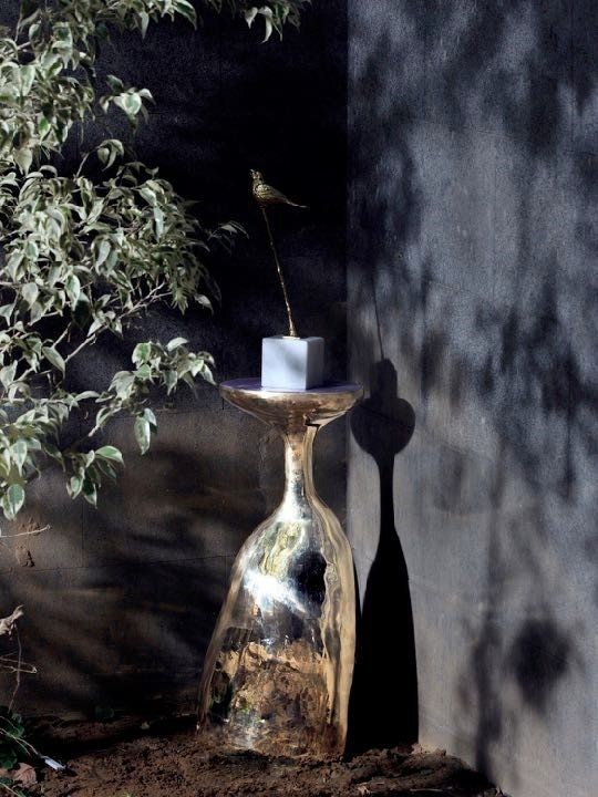In my sculptures form deliberately fights function, the abstract and the figurative collide and man-made materials meet natural elements to form sculptures that ride dangerously on the precipice of practicality, challenging the notions of late 20th century designers that art must have purpose to be beautiful.